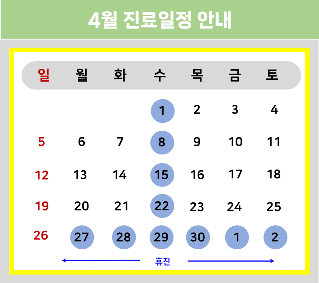 토요일 : 오전 10:00 ~ 오후 3시 (점심시간 없이 진료)
