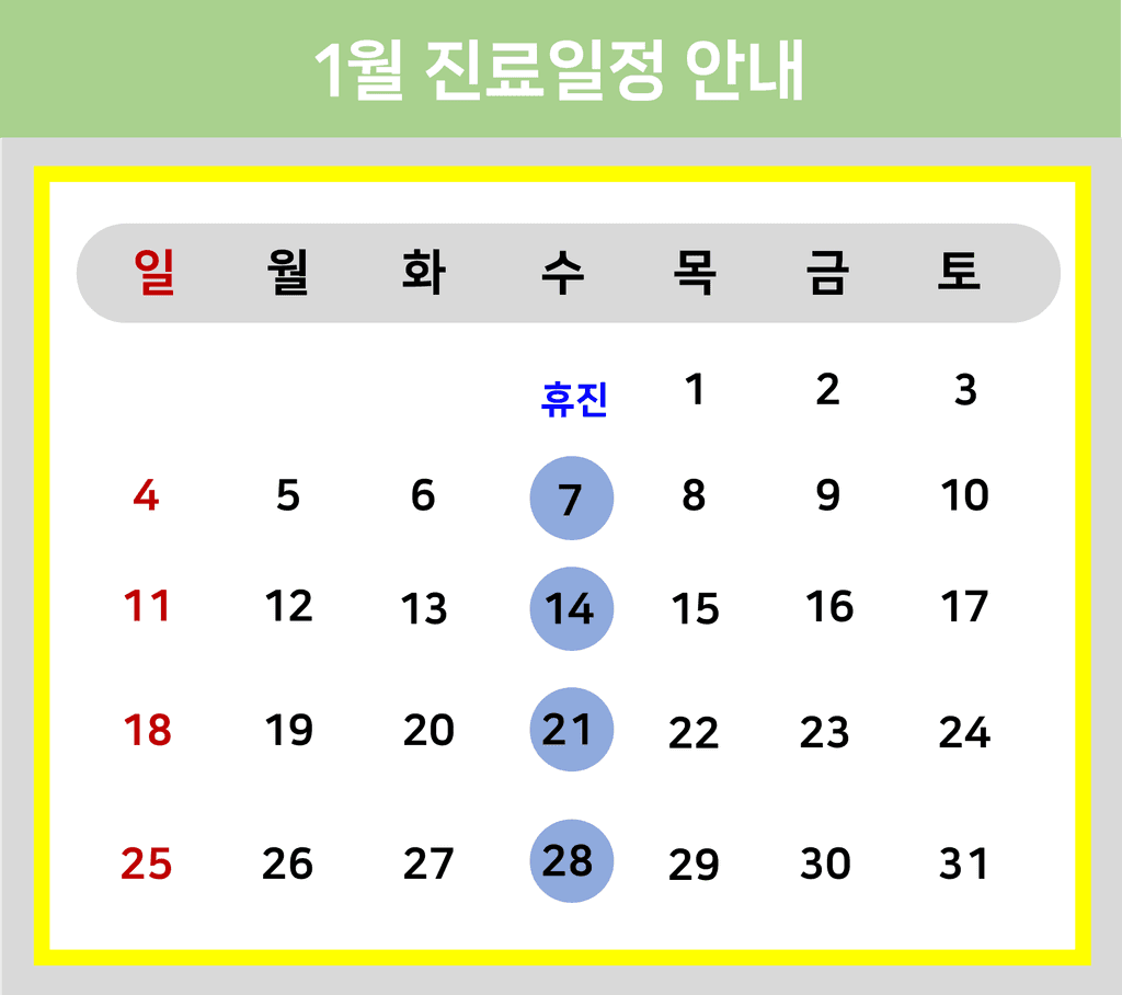 토요일 : 오전 10:00 ~ 오후 3시 (점심시간 없이 진료)